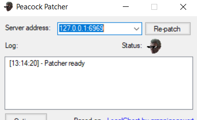 127.0.0.1:NumeroDaPortno campo de URL do Patcher, como mostrado aqui (clique no texto e então escreva, a interface possívelmente será melhorada logo):